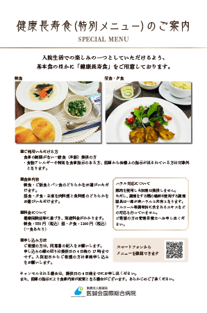 基本食に加えて、特別メニュー「健康長寿食」をご用意しております。